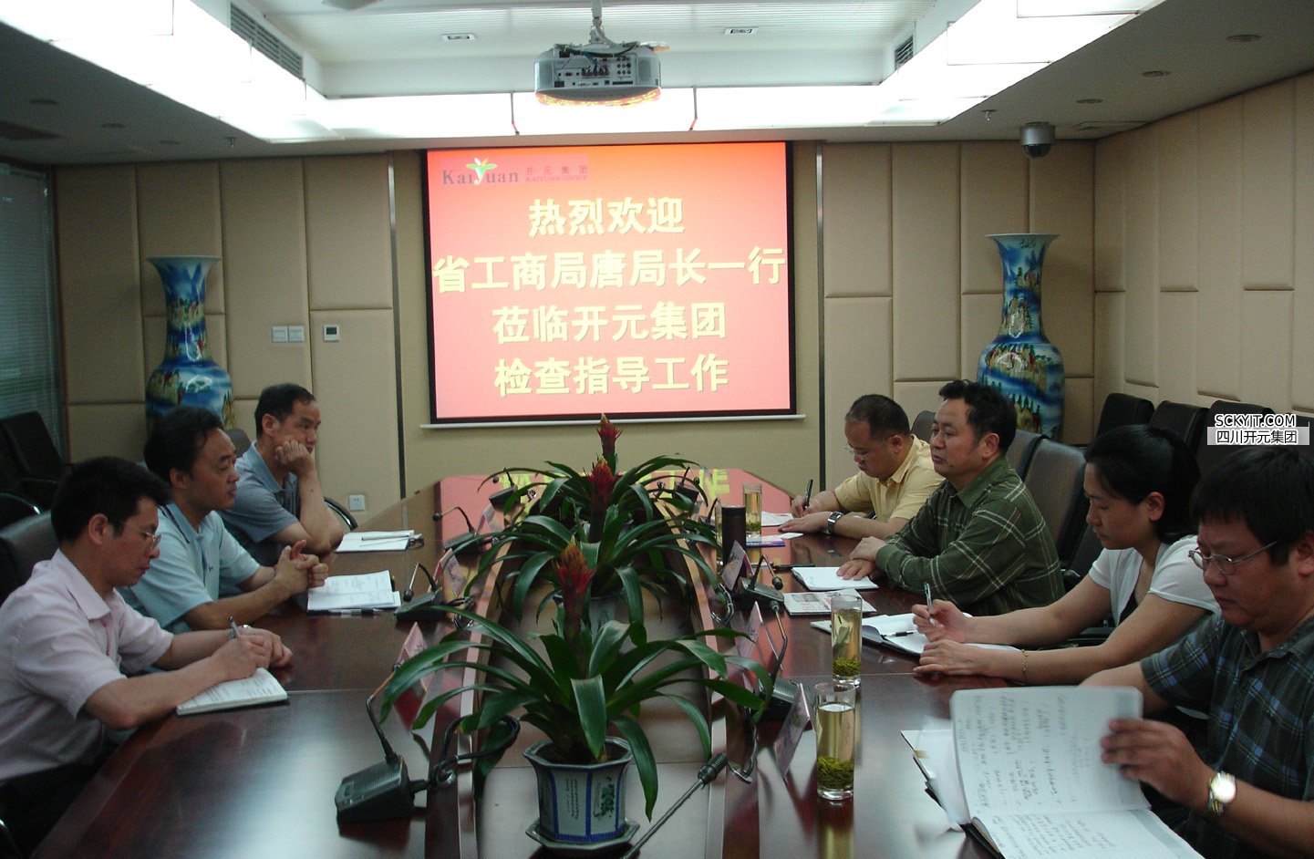 本網(wǎng)訊 5月5日,四川省工商局直屬一分局局長唐成遠(yuǎn)一行4人到集團(tuán)考察調(diào)研。集團(tuán)董事長、總裁趙思儉,副總裁古德福等在三樓會議室向唐局長一行匯報了集團(tuán)近期的工作情況。