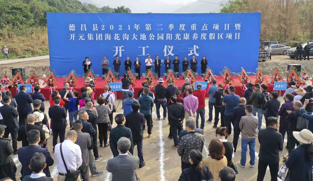 2021年4月9日,德昌縣舉行第二季度重點項目開工儀式,四川開元集團海花溝大地公園陽光康養(yǎng)度假區(qū)項目作為本次開工儀式的主角驚艷亮相。德昌縣委瓦西亞夫書記出席開工儀式并宣布項目開工,縣長李友英為開工儀式致辭,縣委常委劉慶紅主持,縣人大常委會主任吳仲海、縣政協(xié)主席邱金華等領導參加。在儀式上,四川開元集團董事長趙思儉先生與集團邀請的意大利著名建筑設計師Curiel Federico分別致辭。