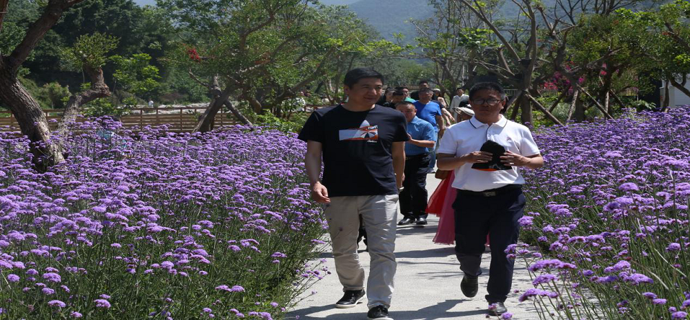 隨后考察團沿溪邊步道一路行向澗茶臺,當下恰逢公園花卉盛開季,大家一邊暢談交流,一邊領(lǐng)略美麗風景。